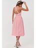 • Особенности:Сарафан прилегающего силуэта из хлопковой ткани. Детали: открытая спина, небольшой участок бретели собран на резину, бретели перекрещиваются на спине, в переднем шве юбки выполнен разрез. Застежка на молнию в среднем шве спинки.