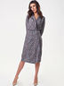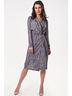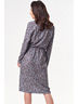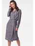 • Особенности: Платье из струящейся принтованной ткани. Детали: отложной воротник, запах, сборка на резинку по талии, два пояска с металлическими пряжками. Рукав втачной, длинный.