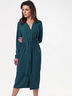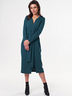 • Особенности: Платье полуприлегающего силуэта из струящейся ткани. Детали: фигурный вырез горловины, втачной длинный рукав, длинные завязки по талии, разрез по низу изделия.