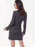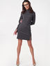 Платье прилегающего силуэта из фактурной костюмной ткани. Детали: воротник стойка, длинный втачной рукав с разрезом по низу, вытачки, отрезное по талии, разрез на юбке.