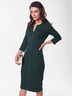 Платье из плотного трикотажа с металлической молнией. Детали: горловина округлой формы с разрезом по переду, кокетки по плечам, втачной рукав 3/4, вытачки, размер по низу изделия.