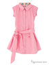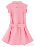 Симпатичное платье с коротким рукавом и воротничком-стоечкой, юбка - полусолнце. Застежка на пуговки по всей длине. Спереди два накладных кармашка, на одном из них - вышивка в виде фирменного логотипа. Линия талии занижена, по линии - пояс со шлевками. Такое платье подойдет как для повседневной носки, так и для праздников!
