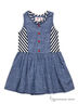 Повседневный сарафан в "морском стиле" на каждый день. Модель без рукавов, ткань жатая, впереди застежка на пуговицы. Юбка сарафана расклешена и имеет подкладку из 100% хлопка.