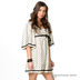 Стильное платье-кимоно в горох. Завышенная талия с поясом, глубокий круглый вырез горловины и свободные рукава 1/2.