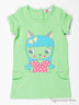 Оригинальное платье для девочки из плотного мягкого хлопка. Округлый вырез горловины. Короткие рукава с отворотами. Сзади застежка на кнопки. Спереди 2 втачных кармана. Модель украшена стильным принтом.
