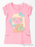 Оригинальное платье для девочки из плотного мягкого хлопка. Округлый вырез горловины. Короткие рукава с отворотами. Сзади застежка на кнопки. Спереди 2 втачных кармана. Модель украшена стильным принтом.
