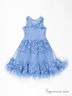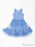 Изящное платье для девочки расклешенного силуэта. Округлый вырез горловины. Без рукавов. Модель украшена сетчатой тканью с вышивкой.