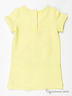 Оригинальное платье для девочки из плотного мягкого хлопка. Округлый вырез горловины. Короткие рукава с отворотами. Сзади застежка на кнопки. Спереди 2 втачных кармана. Модель украшена стильным принтом.