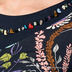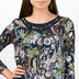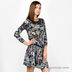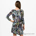 Стильное платье из мягкого трикотажа с цветочным принтом, с круглым вырезом горловины и рукавами 3/4. На бедрах платье присобрано на пояс. Горловина платья украшена разноцветными камнями.