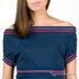 Стильное трикотажное платье с короткими рукавами и воротником-лодочкой. Отрезная линия талии подчеркнута контрасной тесьмой. Низ платья присобран на декоративную тесьму.