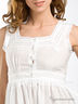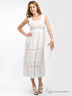 Длинное хлопковое платье. Расклешенный силуэт. Спереди планка застежка на пуговицах. Застегивается сзади на молнию. Под грудью завязка.