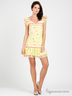Детали: широкие бретели, V-образный вырез с запахом, лиф отрезной по линии талии, декор рюшей, подол выполнен резинкой с с воланом, эффект двойки, спинка открытая с резинкой.