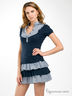 Приталенное платье из плотного трикотажа в рубчик. Каскадная юбка с хлопковыми вставками. Воротник стойка. Планка застежка на пуговицах.