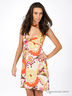 Платье летнее яркой оранжевой расцветки. Глубокий V-образный вырез. Фигурные вытачки. На лифе расположен декоративный поясок.