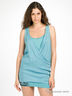 Двухслойное платье свободного силуэта. Нижний слой трикотажный, верхний из легкого хлопка, с запахом. Низ изделия посажен на трикотажную резинку, украшенную бисером.