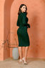 Платье-футляр темно-зеленое длины миди с длинными рукавами