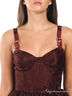 Детали: отрезной лиф; чашечки на косточках; бретели декорированы ремешками, регулирующимися по длине; застегивается на молнию сзади; расклешенная юбка