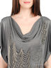 Платье с короткими рукавами и вырезом "водопад". Модель полуприталенного кроя дополнена декоративными элементами спереди. Отличный вариант на каждый день.