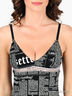 Детали: тонкие бретели, отрезной лиa отделан лентой с логотипом бренда, изделие отлично дополняет принт, придает изделию особенный вид.