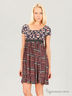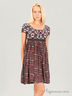 Платье свободного кроя с завышенной линией талии, короткими рукавами и оригинальным рисунком.