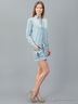 Очаровательное платье привлекательной длины. Модель с длинными рукавами и отложным воротником. Дополнено изделие застежкой на пуговицы и накладными карманами. Поясок ниже талии. Яркий и стильный вариант на каждый день.