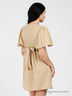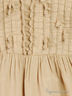 Детали: V-образный вырез горловины, рукава воланы, полочка декорирована защипами и кружевной тесьмой, талия с завязками для банта.