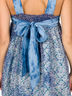 Легкое летнее платье из тонкого шелка. На подкладе. Отрезной лиф выполнен из хлопковой ткани. Декоративный пояс, завязывающийся сзади. Верхняя часть спинки посажена на многорядную резинку.