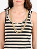 Детали: округлый вырез горловины, лямки, застежка на пуговицу на спинке, вырез "капля" на спинке, в комплекте бусы