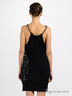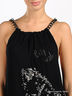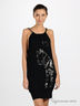 Стильное и смелое трикотажное платье черного цвета. Лямки выполнены из металлической цепочки. Благодаря свободному покрою платье не стесняет движений и прекрасно подойдет для танцев и вечеринок. Декорировано пайетками.