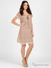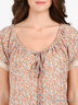 Детали: округлый вырез горловины на резинке декорирован лентами, короткий прямой рукав-реглан декорирован шифоновым кружевом, низ изделия декорирован шифоновым кружевом