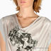 Тонкое шелковое платье. Свободный силуэт. Вырез - качели. По бокам вставки из трикотажной ткани. Изделие декорировано рисунком-принтом и стразами.