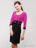 Весеннее женское платье Лира выполнено из приятной на ощупь ткани стрейч-коттон, которая позволит телу чувствовать себя комфортно как прохладным утром, так и в разгар рабочего дня. Изюминка весеннего женского платья Лира - эффектное сочетание двух контрастных цветов ткани. Идеальный приталенный крой, продуманная отделка, зауженная к низу юбка - скроют все недостатки фигуры и умело подчеркнут ее достоинства. Дополняет образ яркий бант и имитация пояса, делающая акцент на талии.