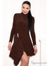 Праздничное платье Кадриль горло выполнено из эффектной приятной на ощупь ткани микромасло. Продуманные детали - воротник стоечка и асимметричный крой юбки подчеркнут вашу природную сексуальность. Сборка на животе скроет небольшие недостатки фигуры.