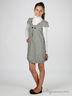 Трапециевидное платье с классическим принтом "гусиная лапка". Круглая горловина. Короткие игривые рукава. На полочке декоративная складка, украшенная двумя пуговицами. Застегивается на молнию сбоку. Два прорезных кармана. Низ платья посажен на тонкий манжет.