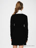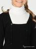 Теплое трикотажное платье черного цвета из приятного на ощупь материала. Вырез каре. Длинные рукава с манжетами слегка присборены на плечиках. Спереди декоративная фактурная вставка на многорядной резинке, украшена пуговицами в тон. Талия подчеркнута широкой трикотажной резинкой.