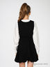 Приталенное платье с расклешенной юбкой-баллоном черного цвета. V-образная горловина. Талия подчеркнута широкой трикотажной резинкой и украшена атласным бантом. Приятная на ощупь шелковистая подкладка.