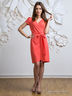Очаровательное платье с короткими рукавами и глубоким вырезом декольте. Изделие выполнено с эффектом запаха и дополнено поясом на талии. Отличный вариант на каждый день.