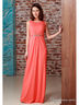 Очаровательное платье "в пол" с короткими рукавами и округлым вырезом горловины. Модель приталенного кроя выполнена из качественного материала привлекательной расцветки. Отличный вариант для создания модного вечернего образа. Спереди платье украшено декоративным элементом.