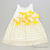 Очаровательное платье без рукавов с округлым вырезом горловины, с пышной юбочкой и удобной застежкой на молнию на спинке. Лиф платья декорирован складками и атласными бантиками, юбка - рюшами.