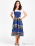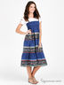 Детали: эффект двойки; круглый вырез; короткий рукав с оригинальными прорезями; пояс на многорядной резинке; кожаные бретели; контрастные вставки с принтом