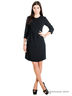 Классическое платье длиной до колена. Модель с рукавами 3/4 и округлым вырезом горловины. Модель приталенного кроя с оригинальным вырезом спинки. Отличный вариант на каждый день.
