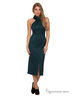 Стильное платье выполнено в оригинальном дизайне будет уместным и в офисе и на празднике. Изделие имеет длину юбки ниже колена, с бретелью через шею. Модель имеет застежку на молнию на спинке.