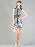 Гладкое платье приталенного кроя. Отложной воротник-стойка, без рукавов, сзади шлица.