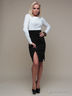 Отличное платье приталенного кроя. Отрезной лиф контрастного цвета. Округлый вырез горловины, длинный рукав, застежка на молнию сбоку. Великолепный вариант на каждый день.