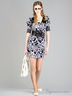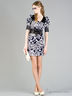 Оригинальное платье приталенного кроя. Выполнено из гладкого материала. Вырез "каре" с отложным воротом, короткие рукава с атласными манжетами, талия подчеркнута широким поясом, сзади застегивается на молнию, снизу шлица.