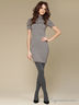 Стильное платье приталенного кроя с коротким рукавом и воротом-гольфом. Дополнено декоративными сборками на рукавах и полочке.