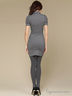 Стильное платье приталенного кроя с коротким рукавом и воротом-гольфом. Дополнено декоративными сборками на рукавах и полочке.
