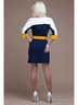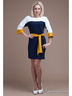 Стильное платье приталенного силуэта. Фигурный вырез горловины, цельнокроеный рукав 3/4, пояс. Декорировано контрастными вставками. Стильный повседневный вариант.