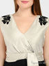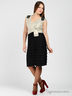 Детали: V-образный вырез спереди и сзади; застегивается на молнию сзади; втачной пояс с драпировкой; лиф декорирован нашивками со стеклярусом и пайетками; юбка декорирована многорядными оборками