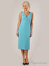Детали: V-образный вырез горловины с запахом, широкие бретели, юбка карандаш, отрезной лиф